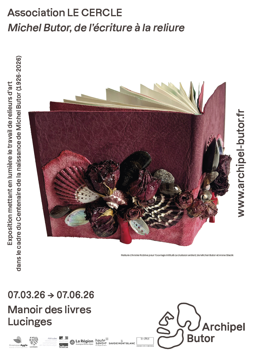 Le Manoir des livres accueille l’Association LE CERCLE, une association de relieurs, dont le président est Florent Rousseau. Cette nouvelle exposition a pour objet les reliures de création réalisées à partir de l’œuvre de Michel Butor.