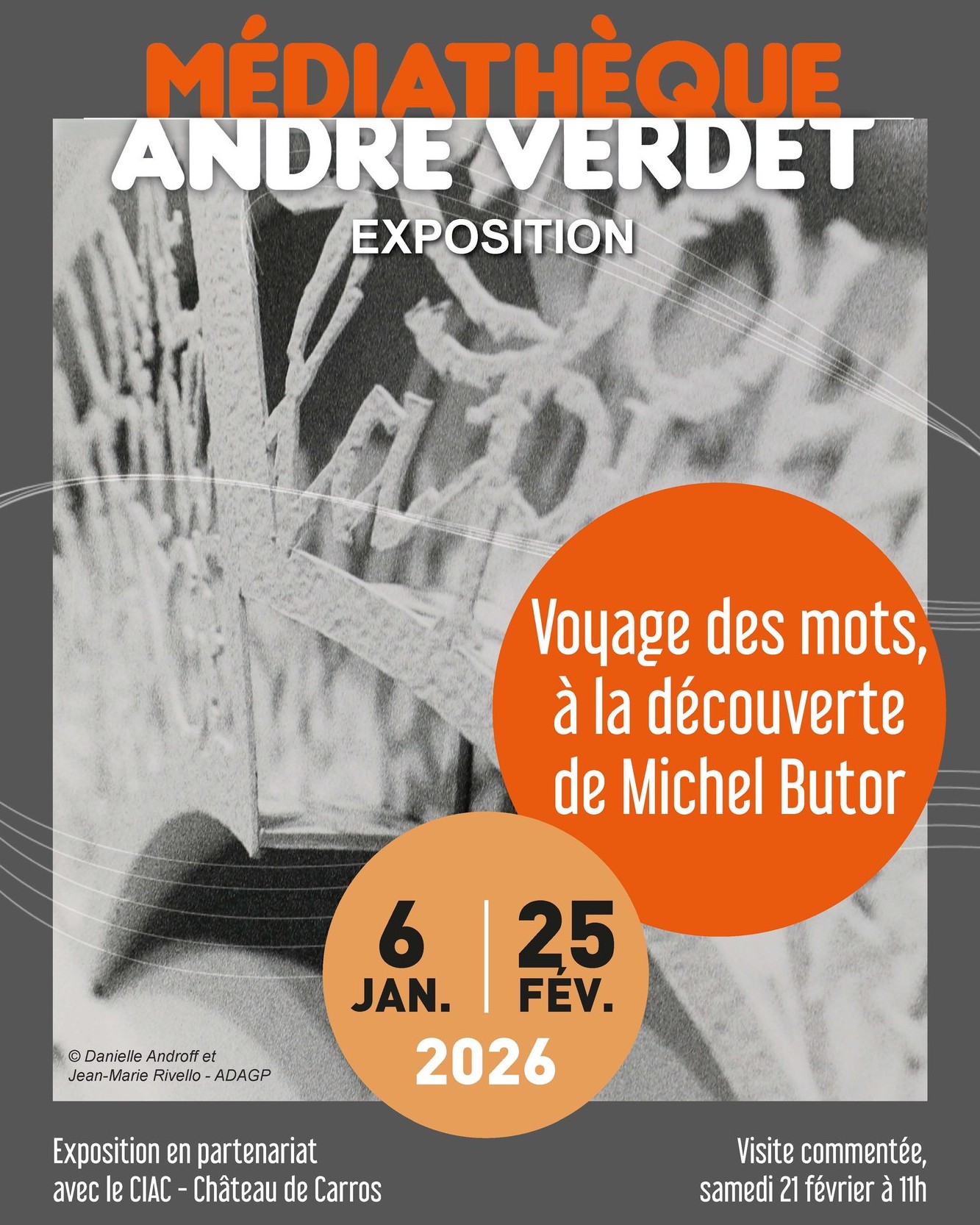 Le Musée Bibliothèque Pierre André Benoit se joint à l’Archipel Butor pour fêter en cette année 2026 le centenaire de la naissance de Michel Butor et pour lui rendre hommage à travers les livres d’artiste qu’il a publié aux Éditions de Rivières en compagnie de nombreux artistes plasticiens. Pour découvrir ces ouvrages, l’’étage de la bibliothèque est ouvert et en accès libre dès le début du mois de février.