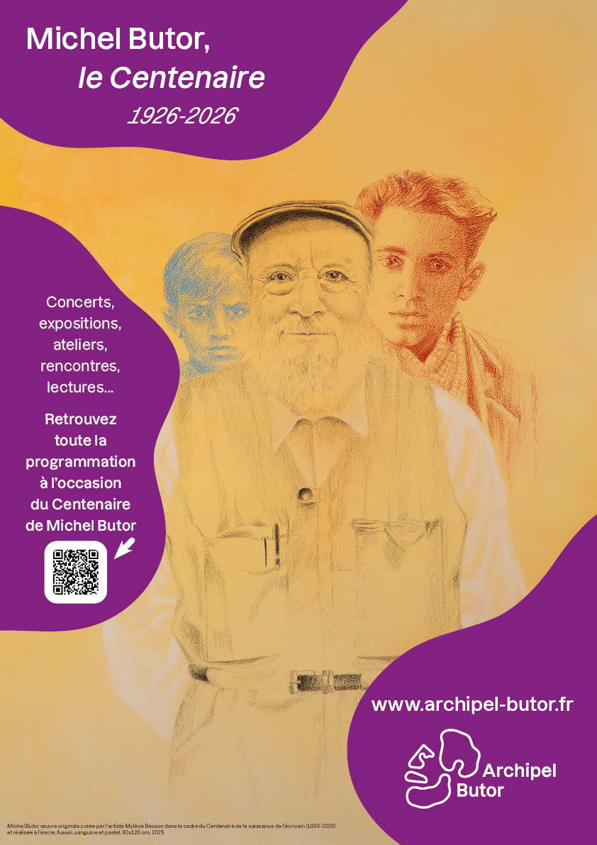 Le 14 septembre 2026 Michel Butor aurait eu cent ans. Romancier à ses débuts, il était aussi poète, essayiste s’intéressant à tous les arts, bâtisseur de formes littéraires nouvelles et pédagogue passionné. Sa complicité avec de très nombreux artistes a fait naître des centaines de livres de dialogue, des œuvres musicales et des films. Toujours prêt à la découverte, il a écrit et parcouru le monde jusqu’à la fin de sa vie, laissant une œuvre ample et étonnamment variée. C’est cette ouverture, cette curiosité toujours en éveil et cette générosité que nous souhaitons célébrer. Les fêtes de ce centenaire seront très diverses, embrassant des domaines multiples comme il le faisait dans son travail. Du colloque à la Sorbonne à la présentation de travaux d’écoliers, d’un concert aux Bouffes du Nord à un salon du Livre d’artiste, elles rappellent dans leur diversité sa façon d’exercer son métier d’écrivain. La fidélité et l’enthousiasme de ses amis et de ses compagnons de travail ont donné vie à tous ces projets, et ces conférences, colloques, concerts, expositions, rencontres auront lieu en France mais aussi dans d’autres pays (Suisse, Belgique, États-Unis…), en écho aux liens tissés par ce voyageur insatiable. Nous aimerions ici remercier chaleureusement tous ceux qui ont mis leur énergie et leur affection pour Michel Butor au service de ce centenaire et exprimer notre reconnaissance à Annemasse Agglo et à l’équipe de l’Archipel Butor pour leur engagement et leur implication dans ce projet. Grâce à eux le centenaire de Michel Butor sera à son image, et certainement tel qu’il aurait aimé le fêter !