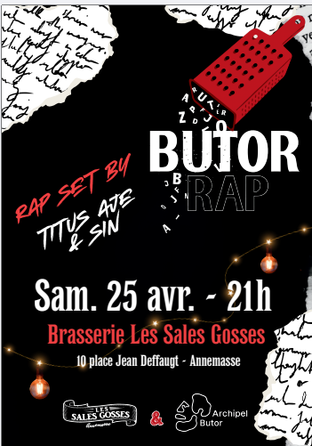 Cet évènement est une performance inédite imaginée par les rappeurs Titus AJE et Sin et la poétesse Audrey Debuysscher. Les poèmes de Michel Butor et d’Audrey Debuysscher (À cœur pendu) prennent vie à travers la musique et le rap, dans une création originale mêlant littérature contemporaine et cultures urbaines.